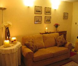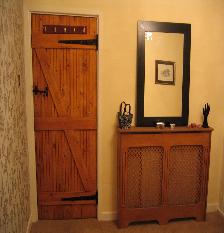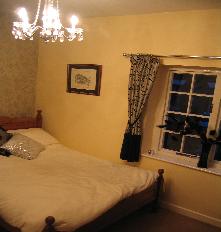 A bedroom full of character and with a Tea and Coffee maker, remote control chandelier TV, DVD player and a space age foam mattress bed for a deep relaxing nights sleep.